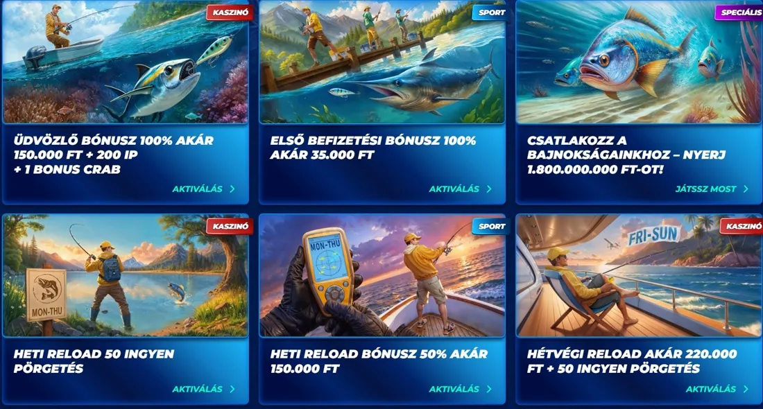 | Üdvözlő bónusz | 100% akár 150 000 HUF-ig és 200 ingyenes pörgetés a sportfogadásra 100% akár 30 000 HUF-ig sportfogadásra |